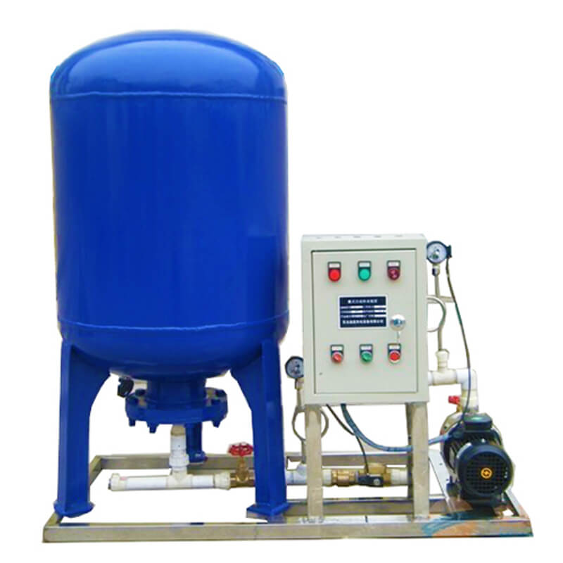 定壓補水脫氣機組是我公司采用先進技術研發的實現集中供熱及空調系統定壓、膨脹、補水、真空脫氣四位一體的新型設備。該設備在系統中起到穩壓、自動補水、膨脹自動泄水,脫除系統內游離氣體及溶解氣體等作用。使系統始終處于有效、環保、節能的運動狀態。 該裝置利用氣壓罐的可調節能力,可自動調節用戶水量的變化,當用水量減少或不用水時,可較長時間不啟動水泵,達到節能目的。 與水塔、高位水箱相比可節省投資約40%—60%。該設備結構緊湊,與其他傳統的供水裝置相比減少了占地面積, 節省了土地資源。本設備全自動運行,無需專人管理,工作可靠。