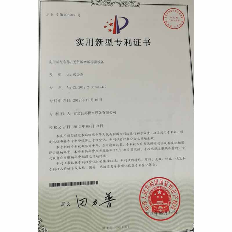 采用儲能與釋放調節裝置雙向補償器,可自動對自來水管網進行持續水量補償,還可以對用戶管網起穩壓補償的作用,確保該設備對自來水管網不產生負壓。